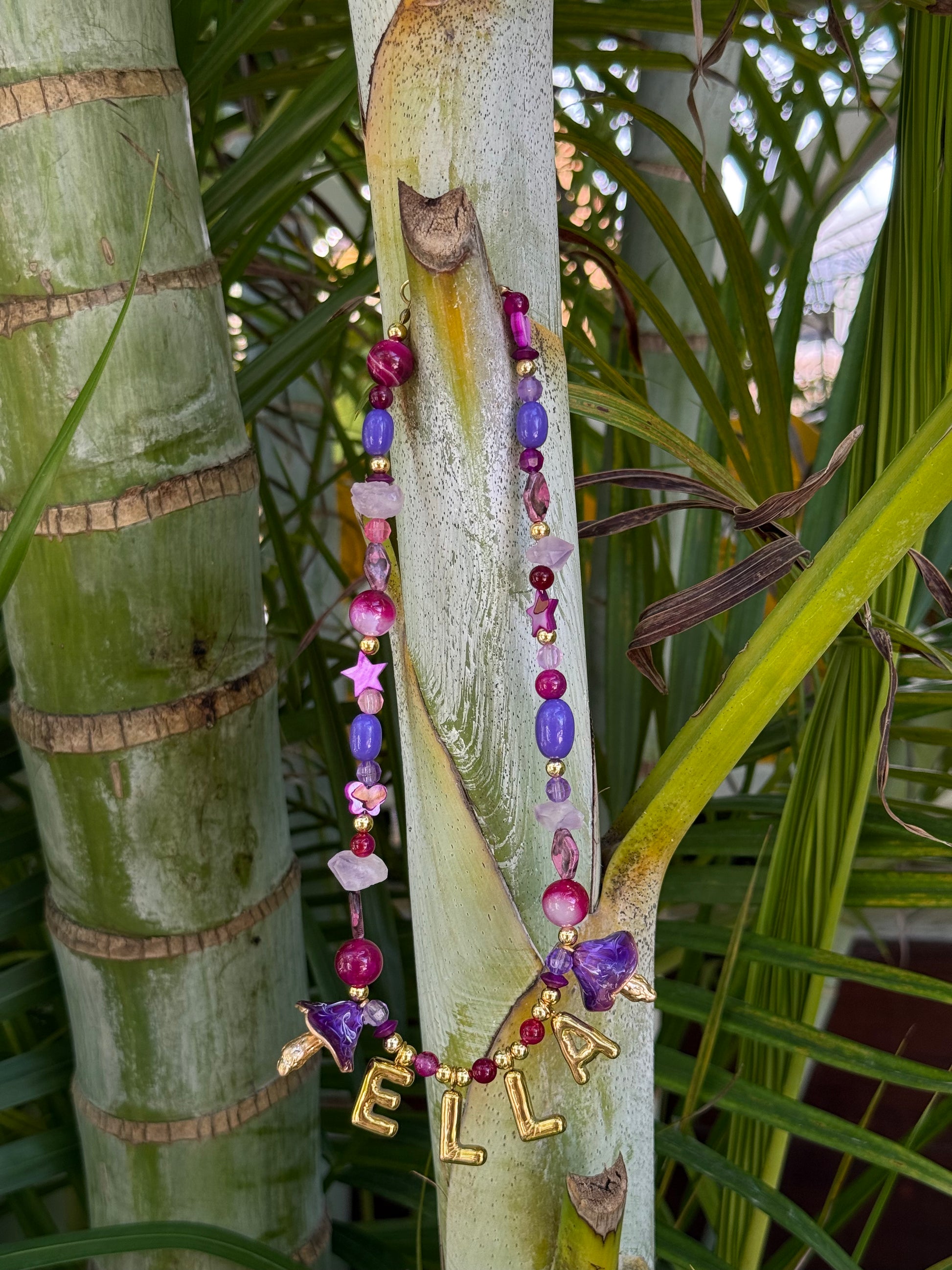 Finished with gold or silver-plated stainless steel findings, this necklace is designed to last, but please keep it dry to preserve its beauty. Each bead and letter is carefully chosen and placed, so handle with the care and admiration this one-of-a-kind piece deserves.